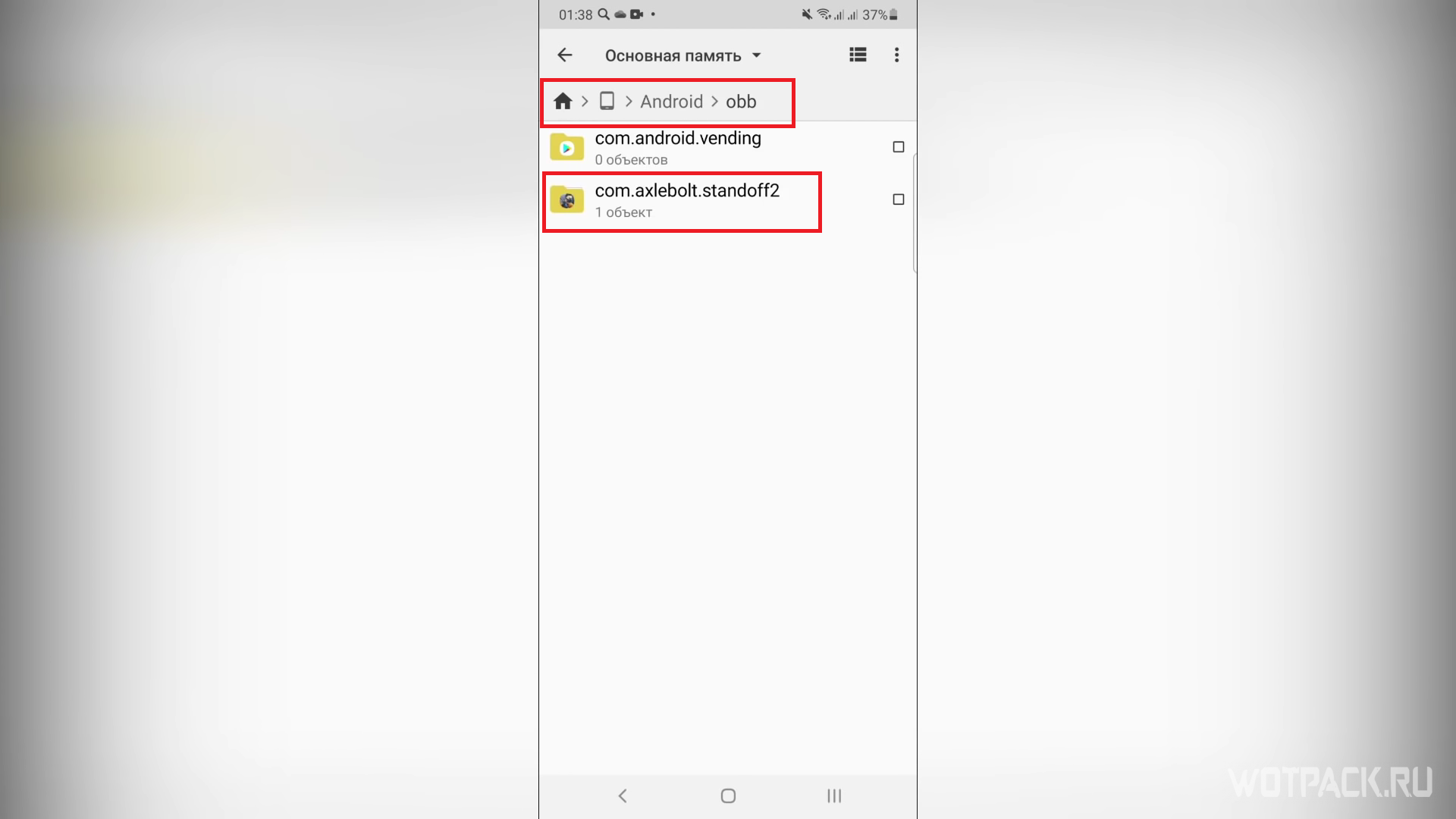 Откройте внутреннюю память телефона и следуйте по пути: Android – obb – com.axlebolt.standoff2